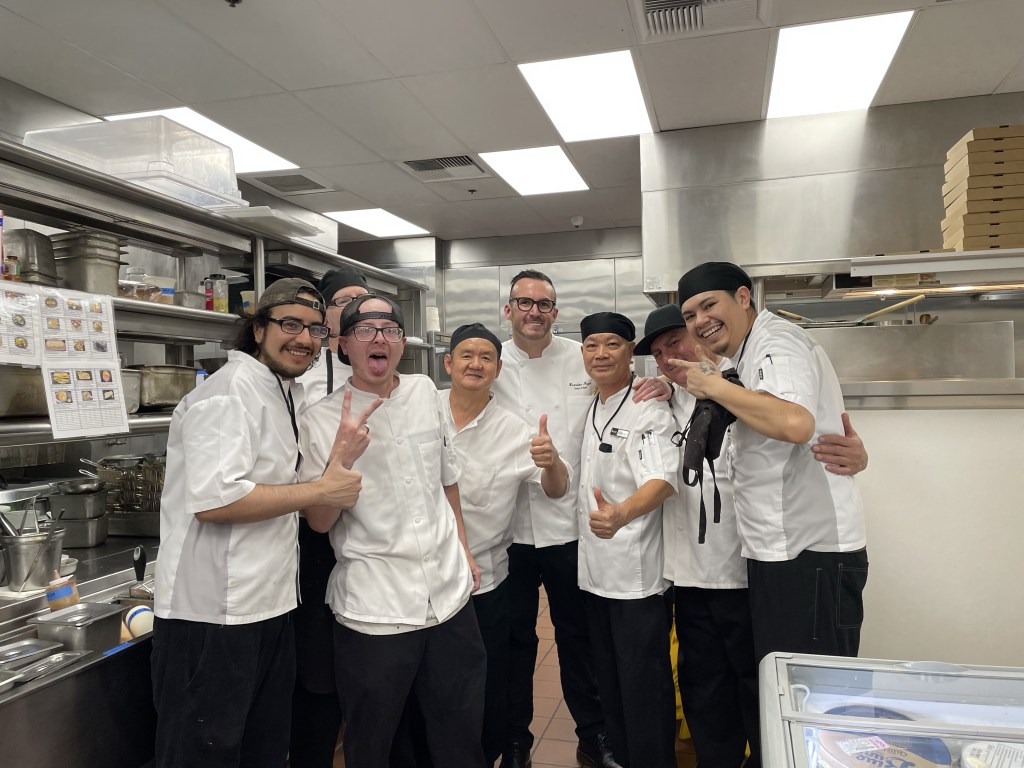 BOOM! the kitchen doors swing open, in comes the chef riding on her broom. Cooks that aren’t busy on a task, grab a rag and start wiping already clean counters. Everyone avoids eye contact with her to steer clear of a deathly look.
